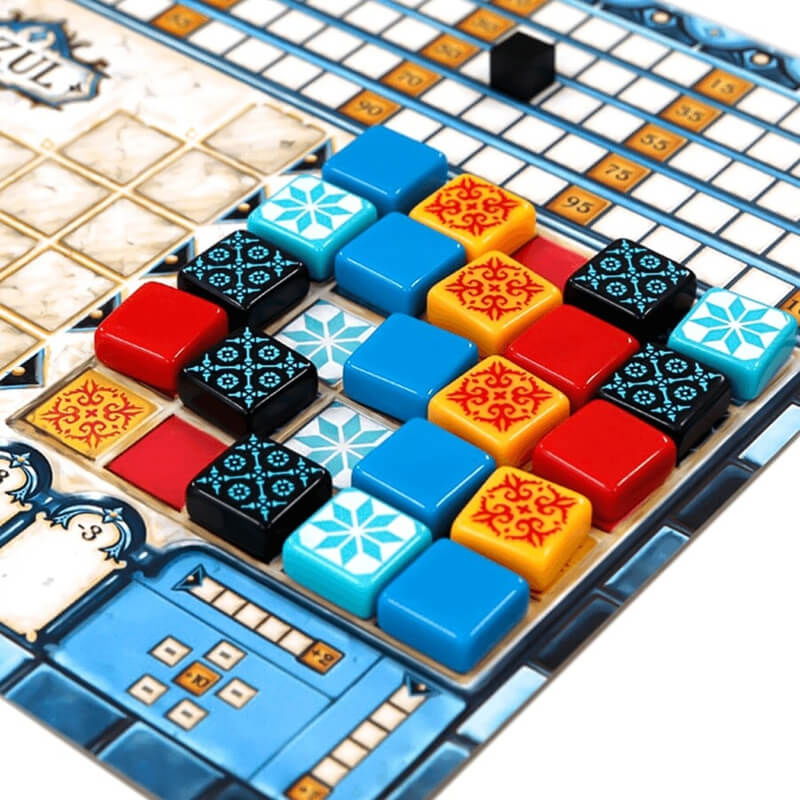 Obiectivul jocului Azul - Jocul de baza + Extensia "Mozaicul de Cristal" (RO) este acela de a decora intregul perete exact ca cei din palatul Alhambra din sudul Spaniei. Alege piese de o singura culoare si pune-le pe un singur rand de formare, iar mai apoi mergi mai departe la completarea intregului perete si castiga astfel puncte.