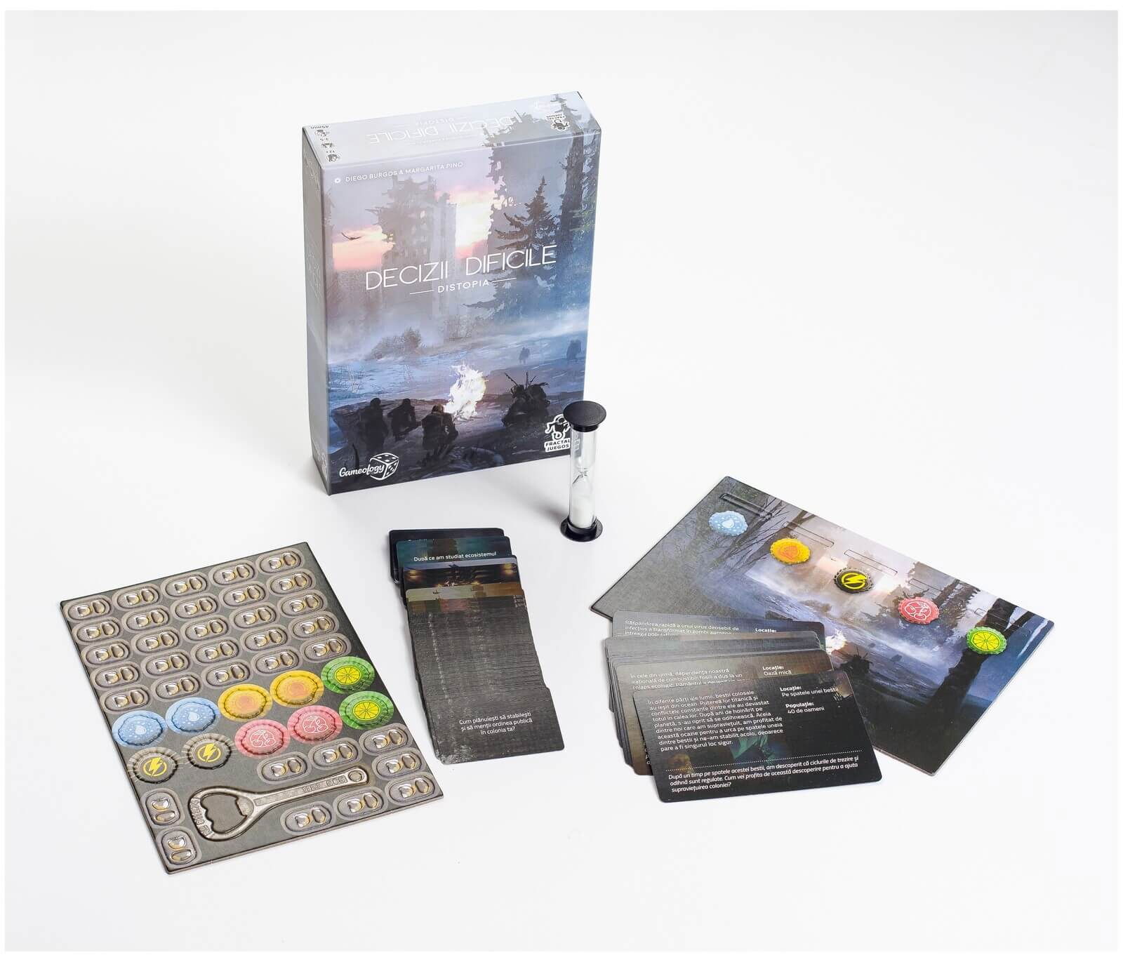 Decizii Dificile (RO) - Tough Calls este un joc narativ de reconstruire a planetei pentru 3-5 jucatori cu varsta peste 12 ani. Intr-o lume in care nimic nu mai este ce a fost, ia-o de la zero si creeaza, populeaza si dezvolta acesta noua realitate, impreuna cu micul tau grup de supravietuitori.