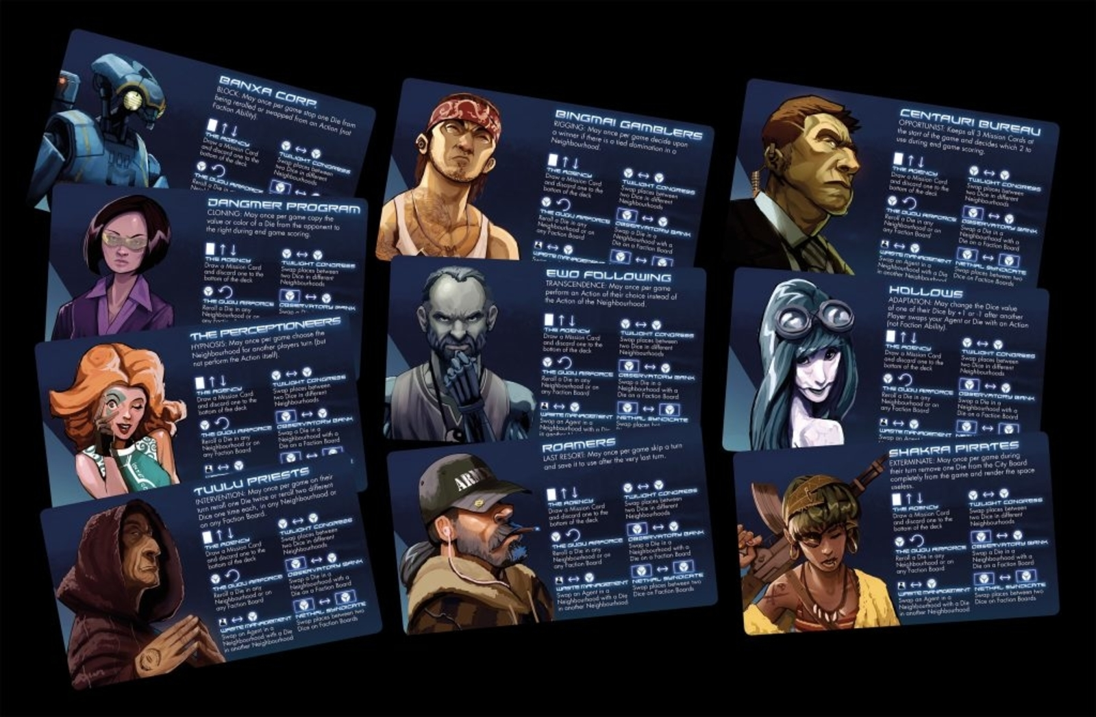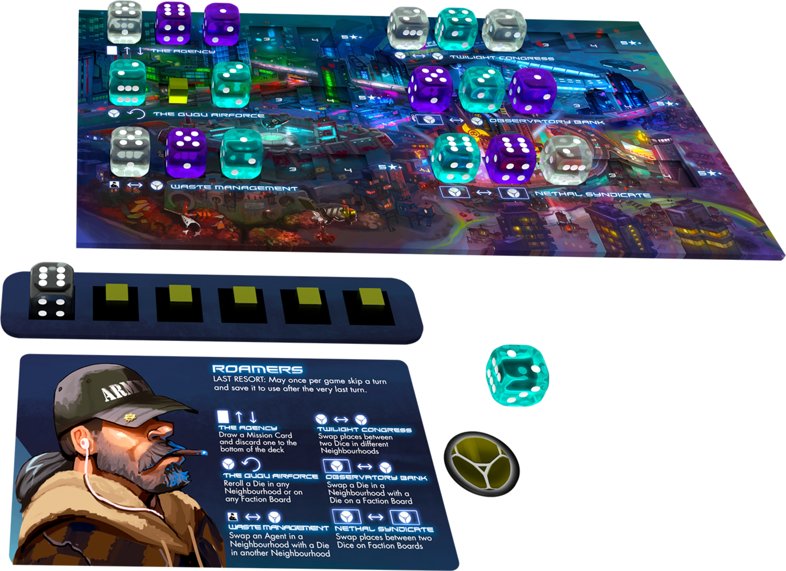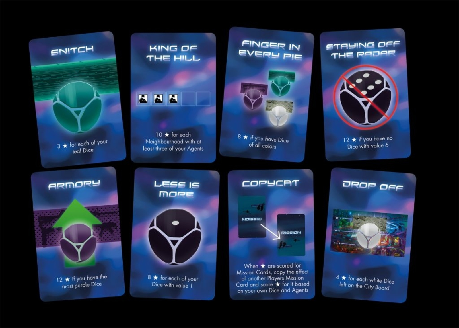 - Pe rand, jucatorii vor trimite un agent din factiune intr-o misiune prin vecinatate.