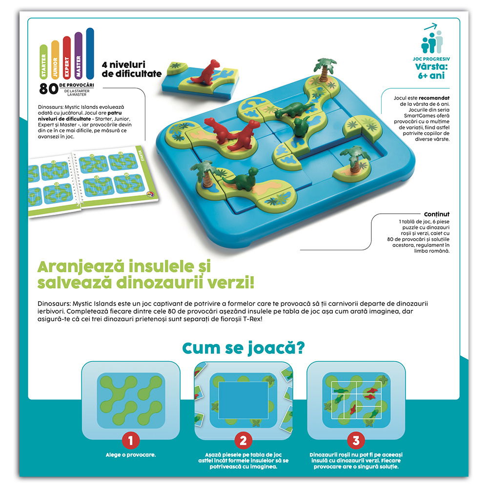 Jocul Dinosaurs - Mystic Islands (RO) dezvolta atentia la detalii, capacitatea de concentrare, gandirea in spatiu si abilitatile de planificare si rezolvare a problemelor.