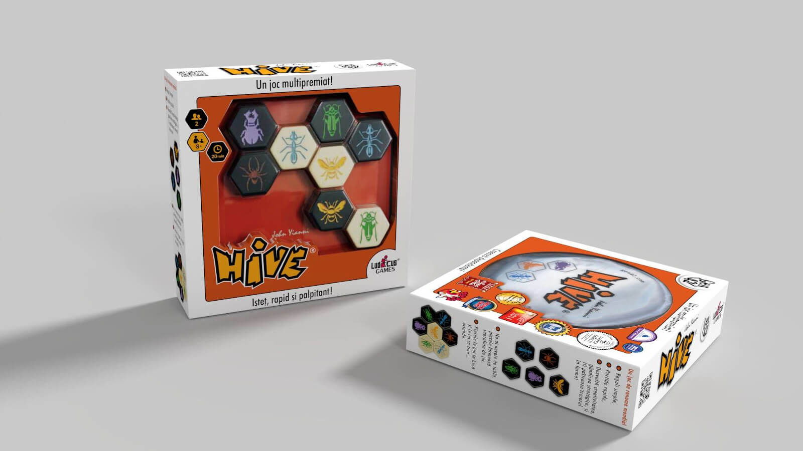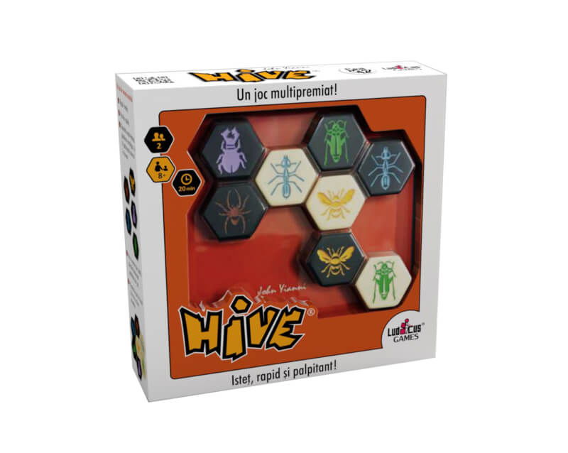 Hive (RO) este un joc usor de invatat, dar greu de stapanit, asemenea sahului, si este potrivit pentru intreaga familie. In plus, jocul este usor de transportat, prin depozitarea pieselor in saculetul cu care este prevazut si poate fi jucat in spatii mici, intrucat nu contine tabla de joc.