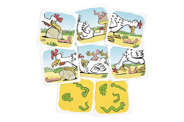 3. Jucatorii vor analiza cartonasul intors pentru a descoperi daca rama din cartonasul cu gaina este prezenta pe el. Daca este, primul jucator care gaseste rama, castiga cartonasul respectiv, asezandu-l in dreptul sau. Daca nu este, se mai intoarce un cartonas din pachet si aseaza langa celalalt. In acest moment, se va cauta rama de pe cartonasul cu gaina care a ramas acum deasupra pachetului, cel mai probabil alta.