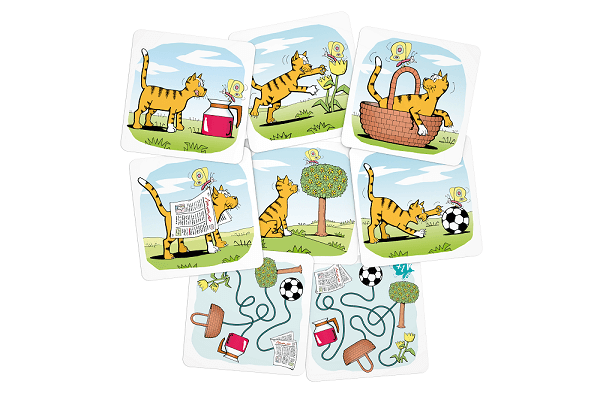 2. Pe rand, fiecare jucator va extrage cate un cartonas din pachet, il va intoarce si il va aseza in dreapta cartonasului cu pisica.