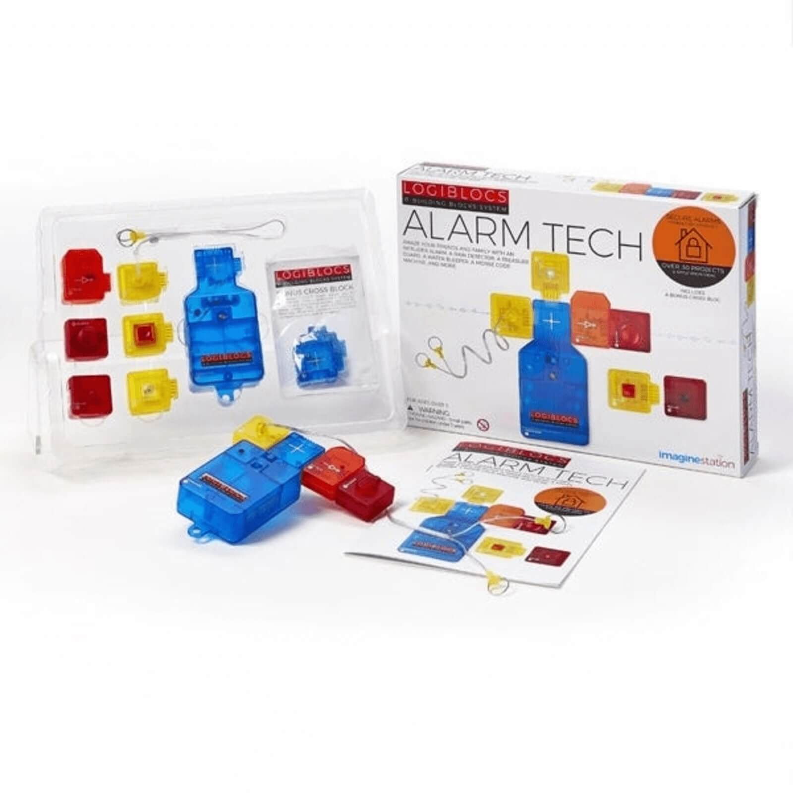 Kit de constructie Logiblocs - Alarm Tech este conceput pe baza de atingere si senzori de lumina. Cu ajutorul acestuia poti realiza diverse dispozitive distractive, care iti pot folosi nu doar ca alarma sau sonerie.