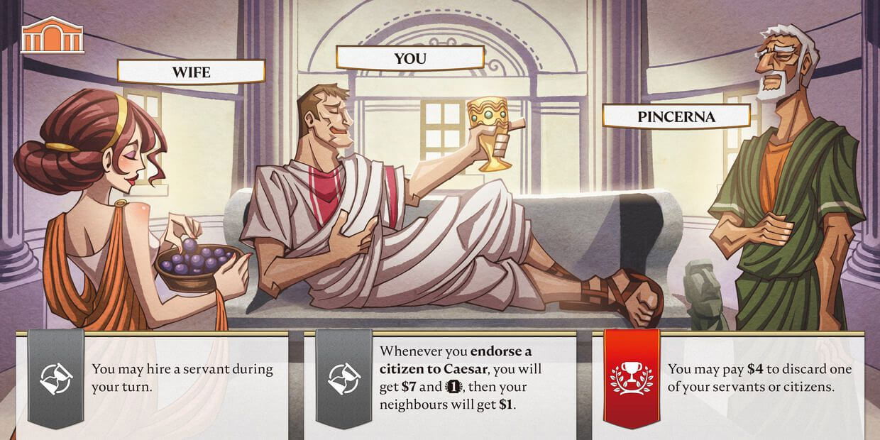 Scop: salvarea lui Cezar. Este singurul Senator loial lui Cezar, misiunea fiind una dificila, intrucat toti ceilalti vor lupta impotriva lui. Pe parcursul jocului, Agentul va incerca sa pastreze si sa creasca nivelul actual de influenta a lui Cezar.