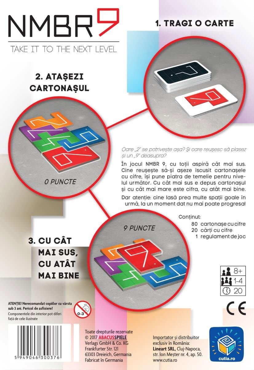 NMBR 9 (RO) este un joc in care trebuie sa formezi un teanc din cartonase cu cifre, astfel incat sa obtii mai multe puncte fata de adversarii tai.