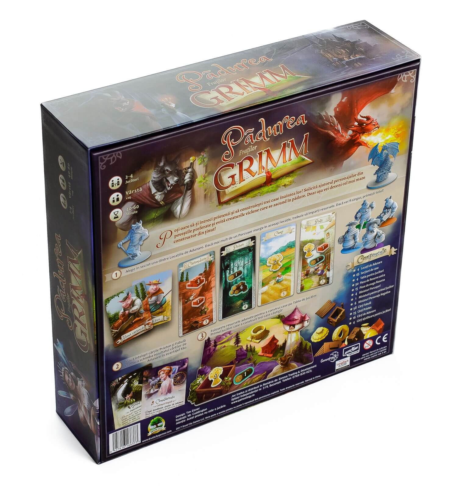 Padurea Fratilor Grimm (RO) - Grimm Forest este un joc strategic competitiv, recomandat pentru 2-4 jucatori cu varsta peste 14 ani, in care scopul este sa construiesti 3 case inaintea celorlalti jucatori, folosindu-va de Prieteni si ferindu-va de Personaje Negative cunoscute din basmele copilariei.