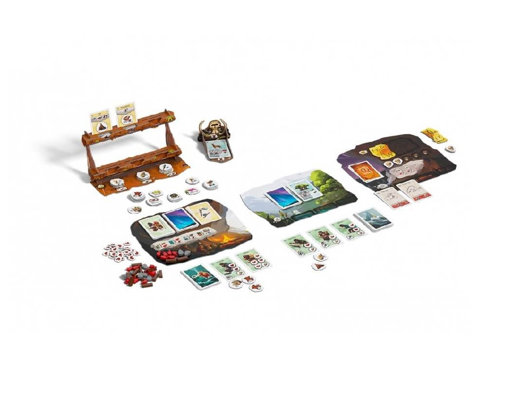 222 cartonase, 40 piese din lemn, 98 jetoane, 3 table de joc, 1 cimitir, 1 banc de lucru, 2 zaruri, 1 supliment, 1 regulament.