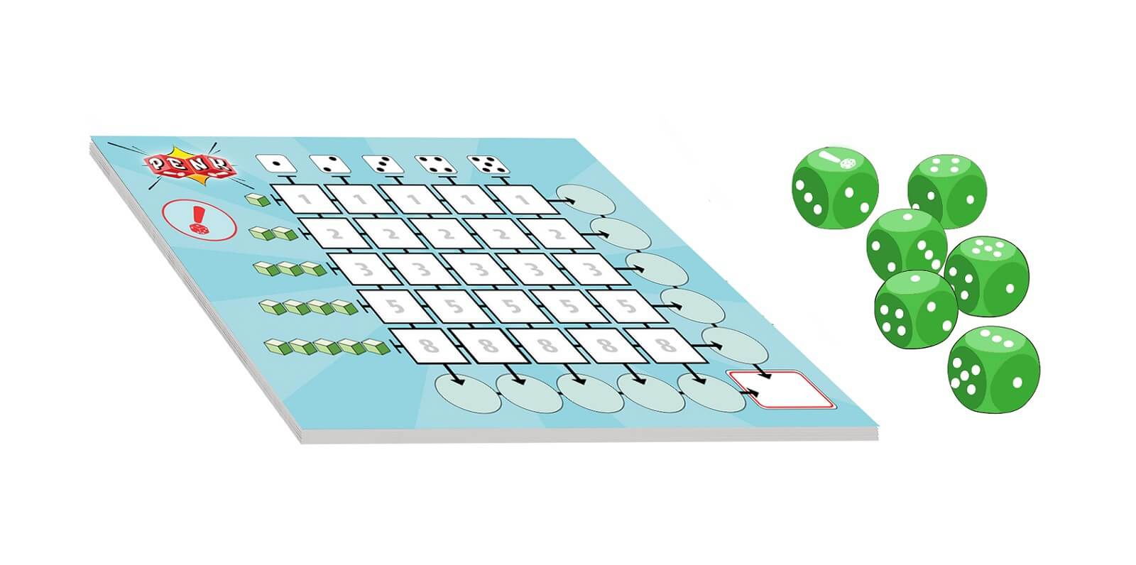 Fiecare zar contine numere de la 1 la 5, numarul 6 fiind inlocuit de semnul exclamarii “!” si reprezentand Jolly-ul jocului. Fiecare pagina din carnetel contine un tabel special. Randurile tabelului corespund numerelor de pe zaruri, iar coloanele numarul de zaruri.