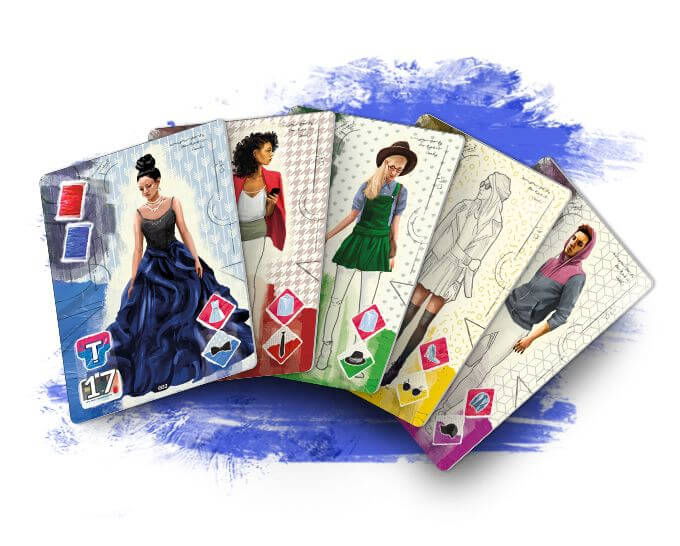1 tabla de joc, 4 table individuale, 150 cartonase (50 Design, 24 Cladiri, 24 Contracte, 24 Angajati, 10 Credit, 3 Imprumut, 4 Ajutor jucator), 10 piese Prezentare de Moda, 30 jetoane Calitate, 19 jetoane Trend, 15 jetoane PR, 19 jetoane Prestigiu, 5 jetoane Stil, 4 jetoane Schimbare de Stil, 5 jetoane Tip de Imbracaminte, 4 indicatori Puncte de Victorie, 70+ jetoane valorice, +70 piese din lemn din 6 culori diferite, 12 pioni Actiune din lemn in 4 culori diferite, 8 indicatori de Intretinere in 4 culori diferite, 1 piesa indicator tura din lemn, 1 jeton primul jucator, 1 piesa Ordinea turii, 4 indicatori de ordine a turii, stickere si instructiuni de joc.