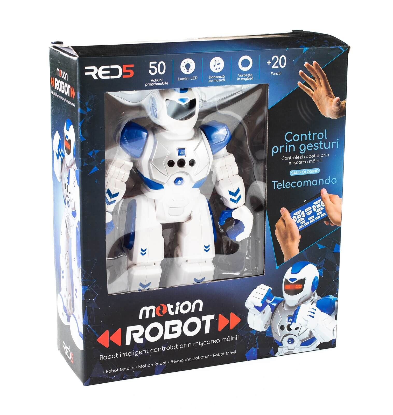 Alege un Robot controlabil prin miscarea mainii (RO) inteligent, pe care il poti controla prin simpla miscare a mainii sau prin telecomanda! In plus, il poti programa sa execute pana la 50 de actiuni!