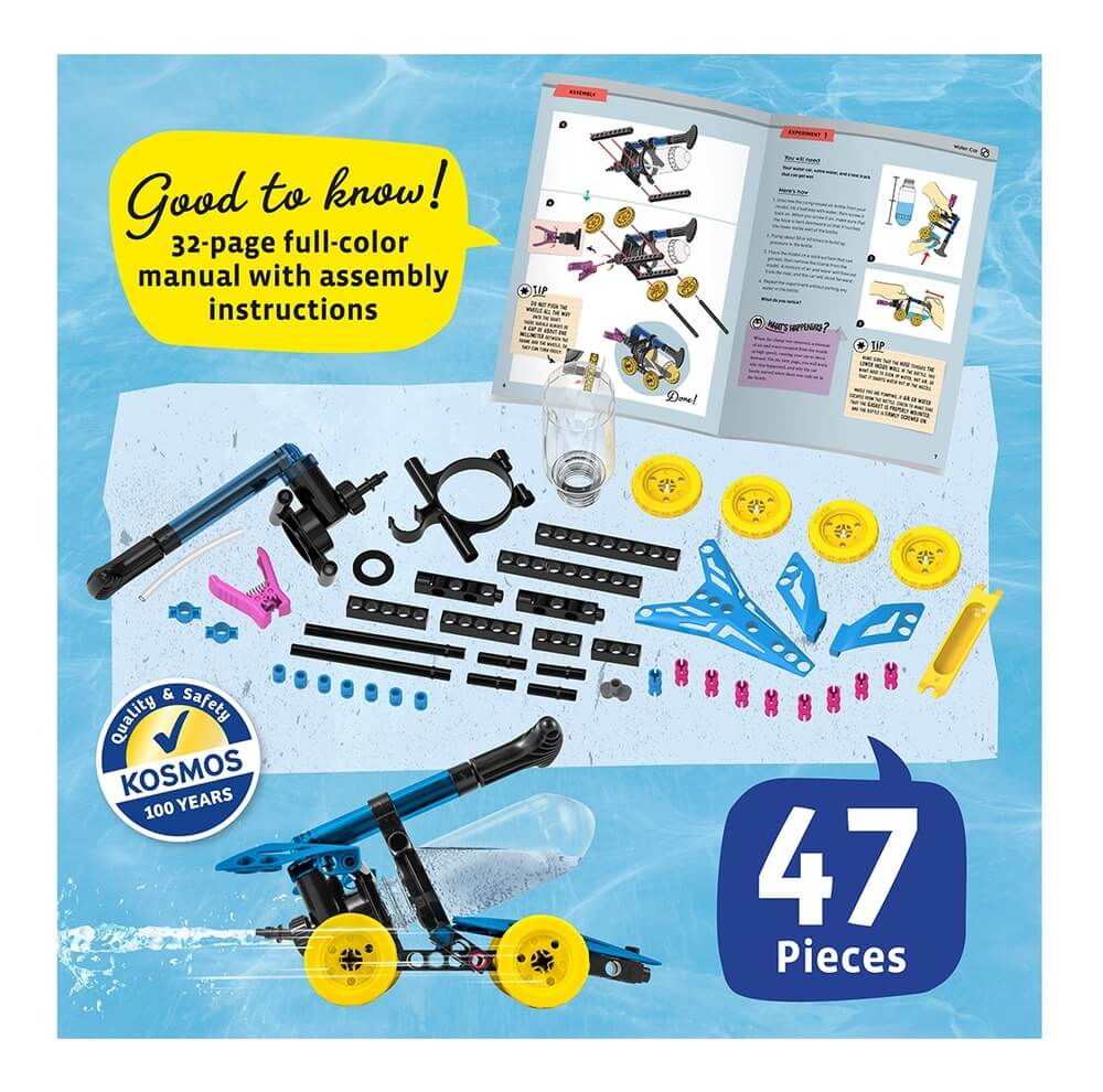 Experimenteaza si testeaza diferențele dintre apa si aer cu acest Set educativ STEM - Vehicule propulsate cu apa pentru a afla de ce racheta ta are nevoie de ambele pentru a merge rapid.