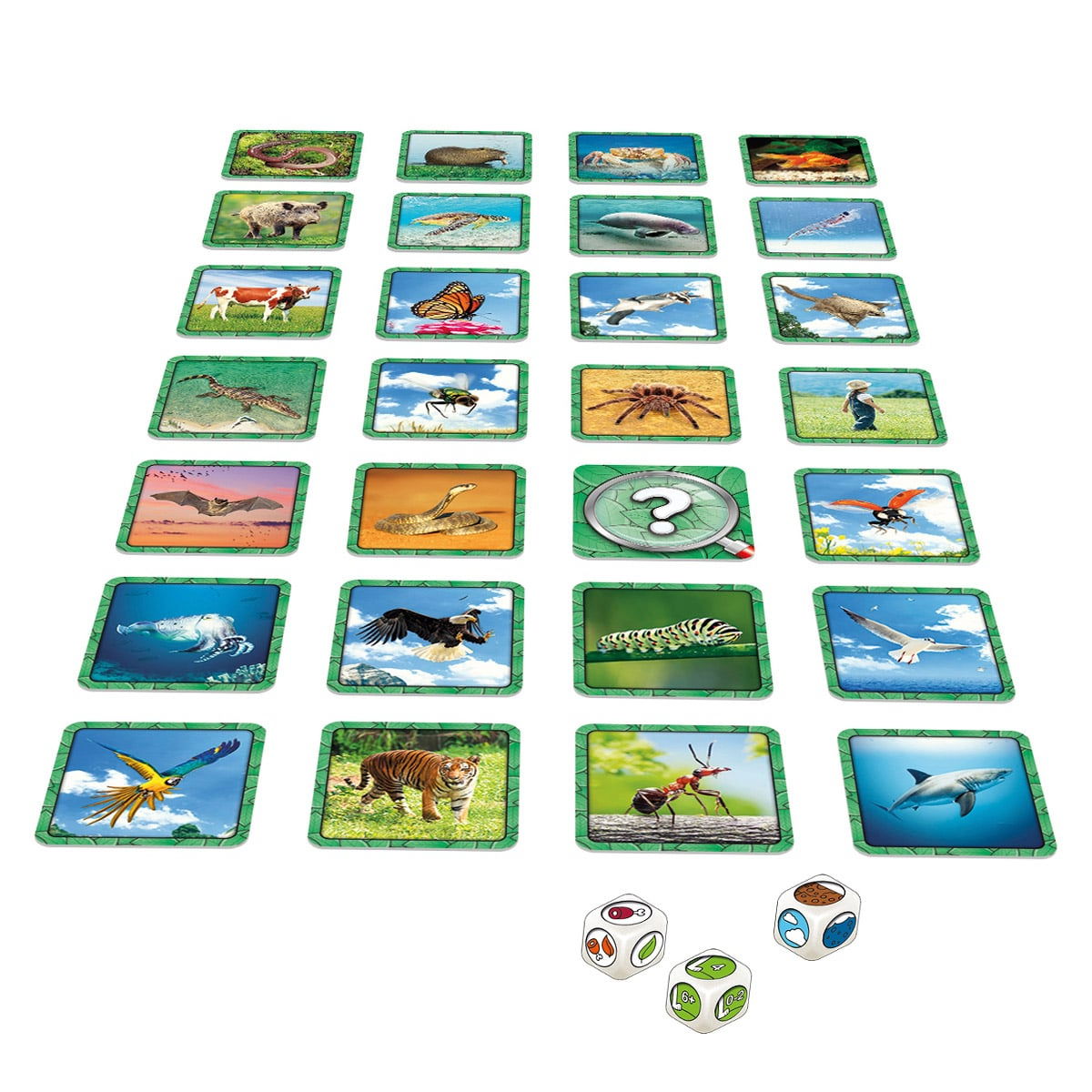Se arunca cele trei zaruri speciale, care indica: habitat, culoare si numar de picioare.