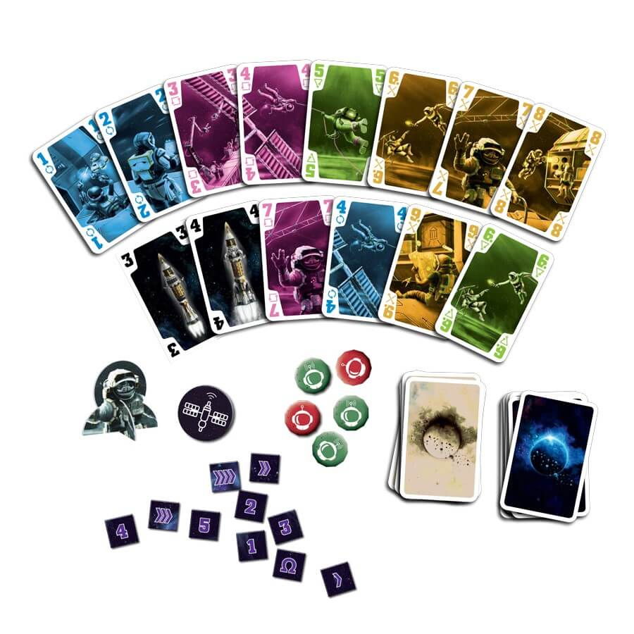 45 carti mari, 36 carti racheta, 5 carti de reamintire, 36 carti mici (cu obiective), 16 jetoane, 10 jetoane cu obiective, 5 jetoane de comunicare radio, 1 jeton ''semnal de avertizare", 1 jeton pentru comandat, 1 manual / jurnal de bord.