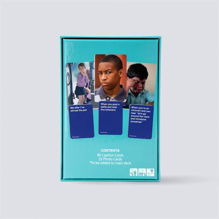 115 noi cartonase (90 cartonase cu fraze si 25 de cartonase cu imagini) ce pot fi adaugate jocului de baza What Do You Meme? pentru a te bucura de un plus de distractie alaturi de prietenii tai!